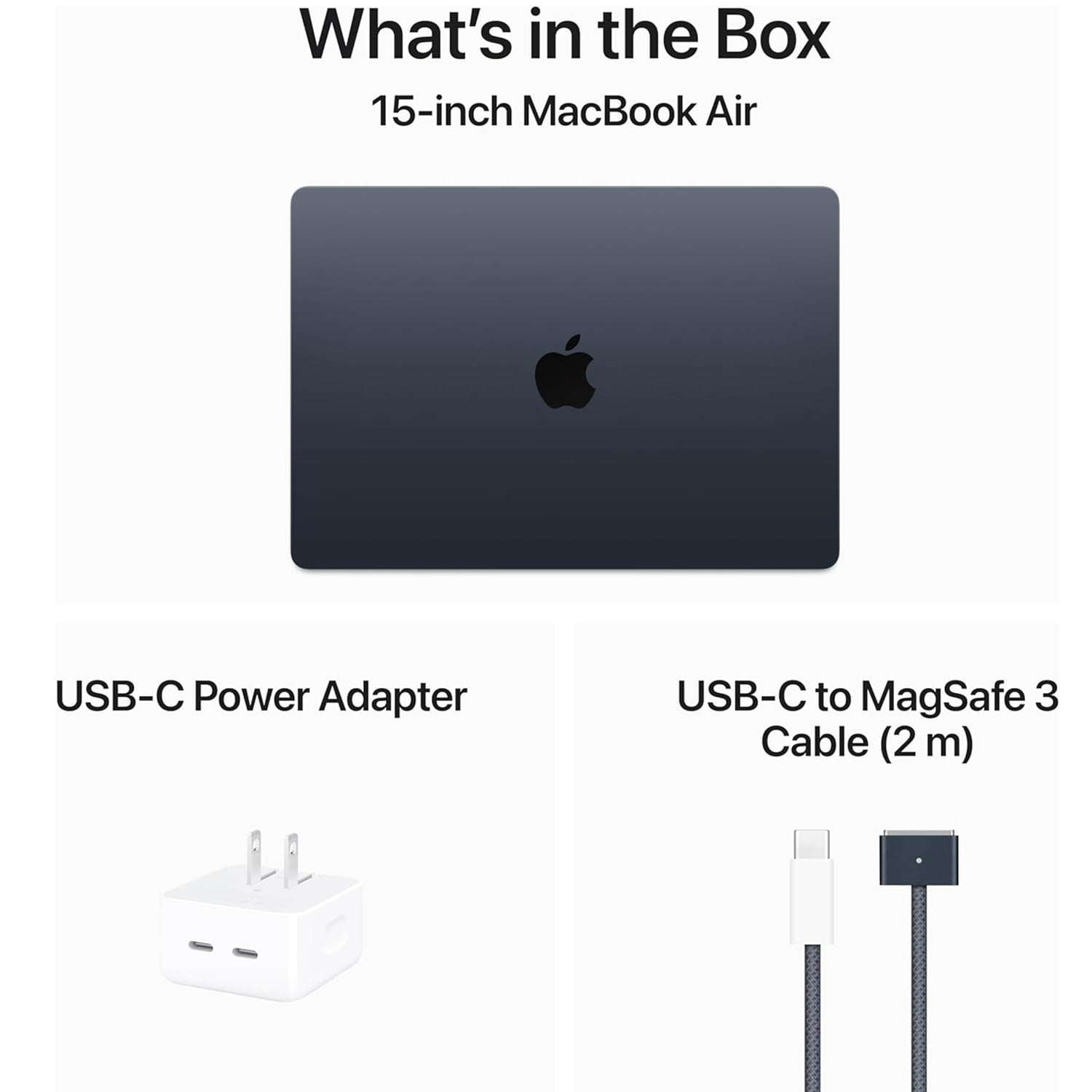 15-inch MacBook Air, 35W Dual USB-C Port Compact Power Adapter, USB-C to MagSafe 3 Cable (2 m) |
