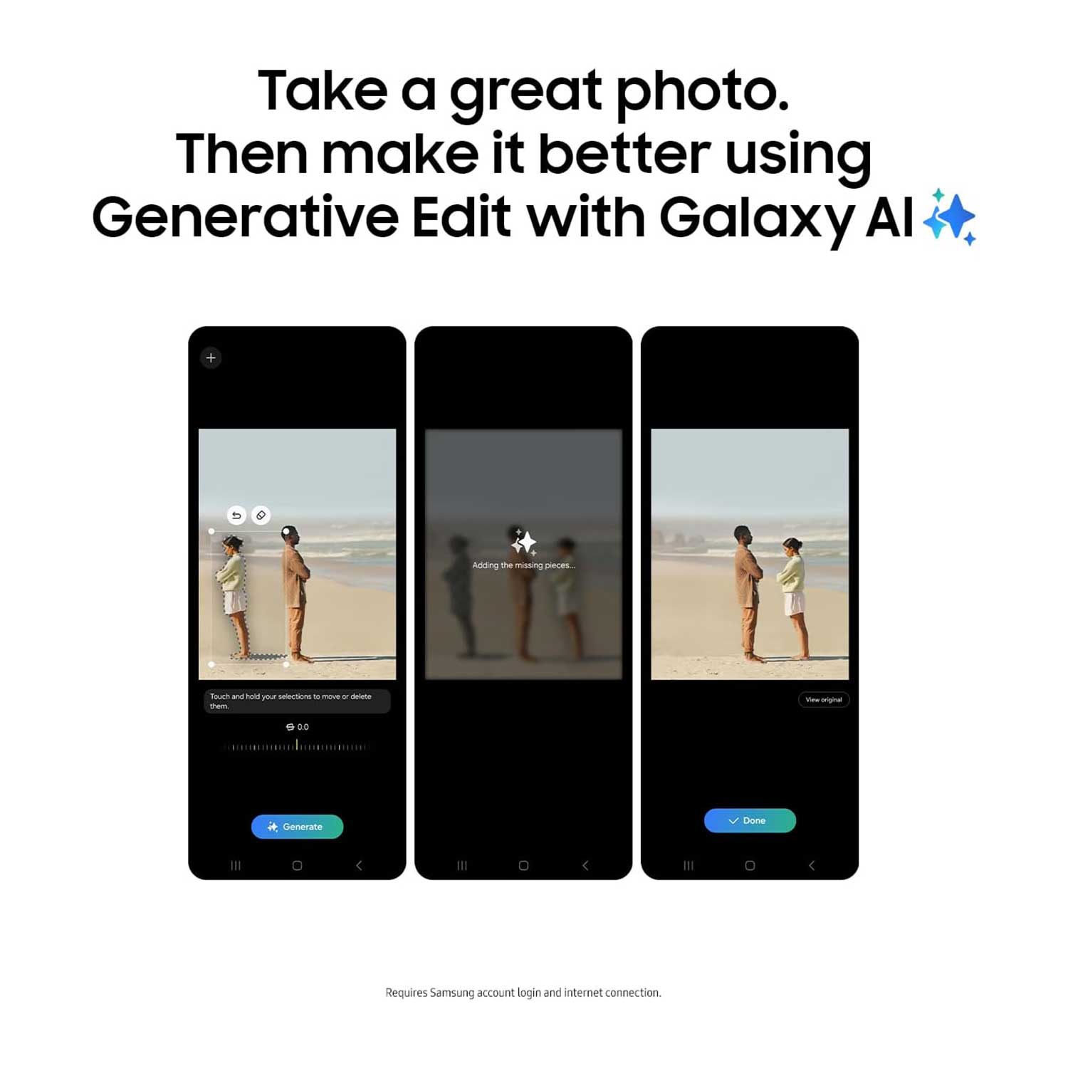 Galaxy AI Features: • Live Translate for real-time call translations • Chat Assist for tone adjustments in messages • Circle to Search with Google for intuitive visual searches • Generative Edit for advanced photo editing capabilities • AI-powered camera features for optimized shots